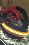 Підсвітка ідеально кріпиться на корпус Einhell / MacallisterНе потрібно підключатись до щіток або тягнути окремо дроти до блоку живлення! Все компактне і працює від повербанку. Вистачає на 2 години роботи, а так як в комплекті 2 повербанка - Ви зможете працювати без перерви